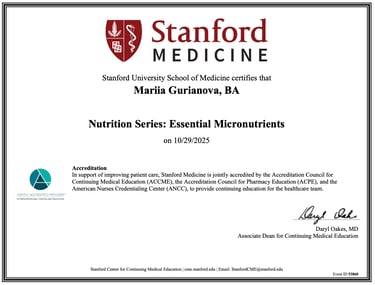 Пять лет назад я приняла решение кардинально изменить свою карьеру. Несмотря на два образования — первое экономическое и второе как логист-международник — я осознала, что мое истинное призвание связано с помощью людям через нутрициологию. Сейчас я получаю фундаментальное образование - заканчиваю Британский Колледж Натуропатии и Нутрициологии, чтобы подкрепить свой практический опыт научными знаниями мирового уровня.